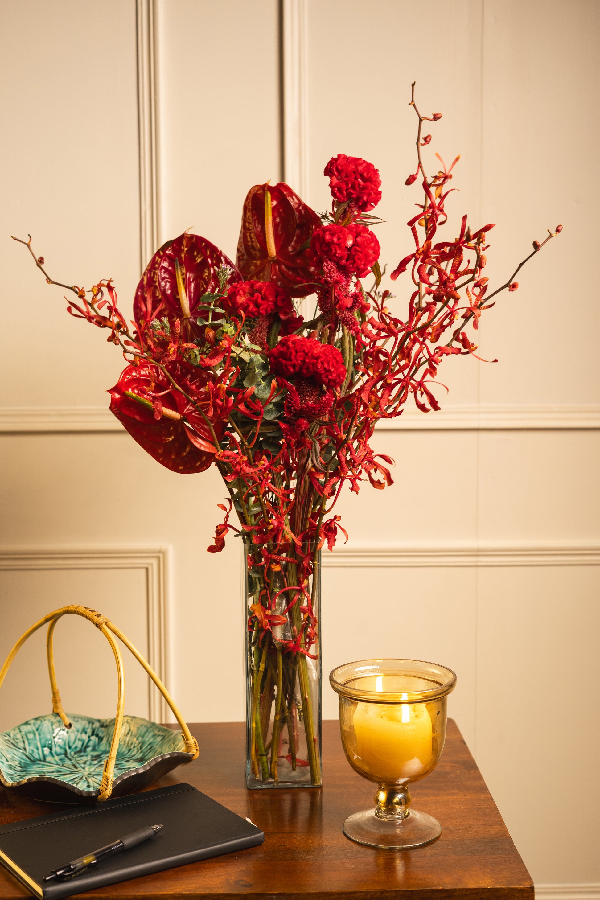 Red Anthurium, Red Cockscomb, Red Spider Orchids