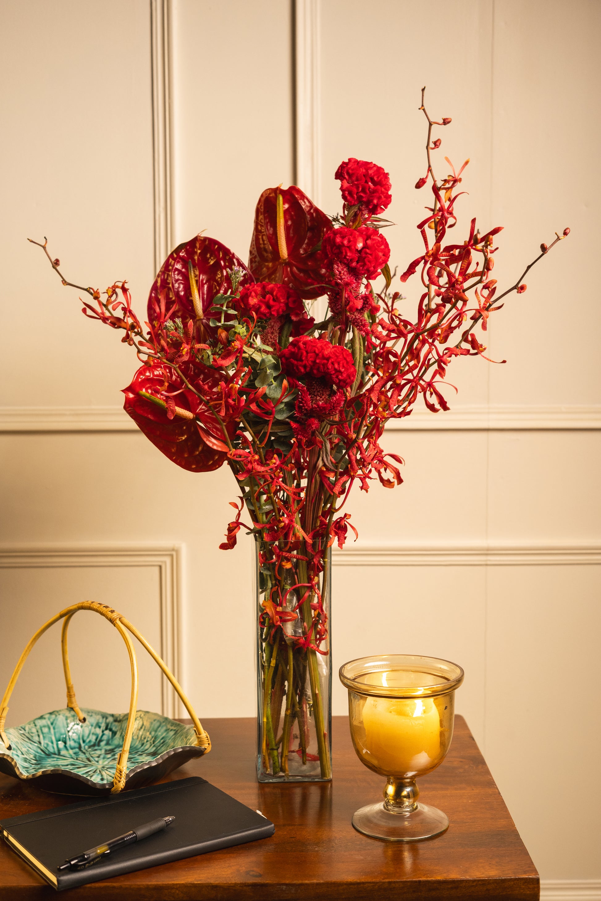 If the exact vase is unavailable, we will replace it with a vase of the same or higher value, maintaining the overall aesthetic and quality of your arrangement.