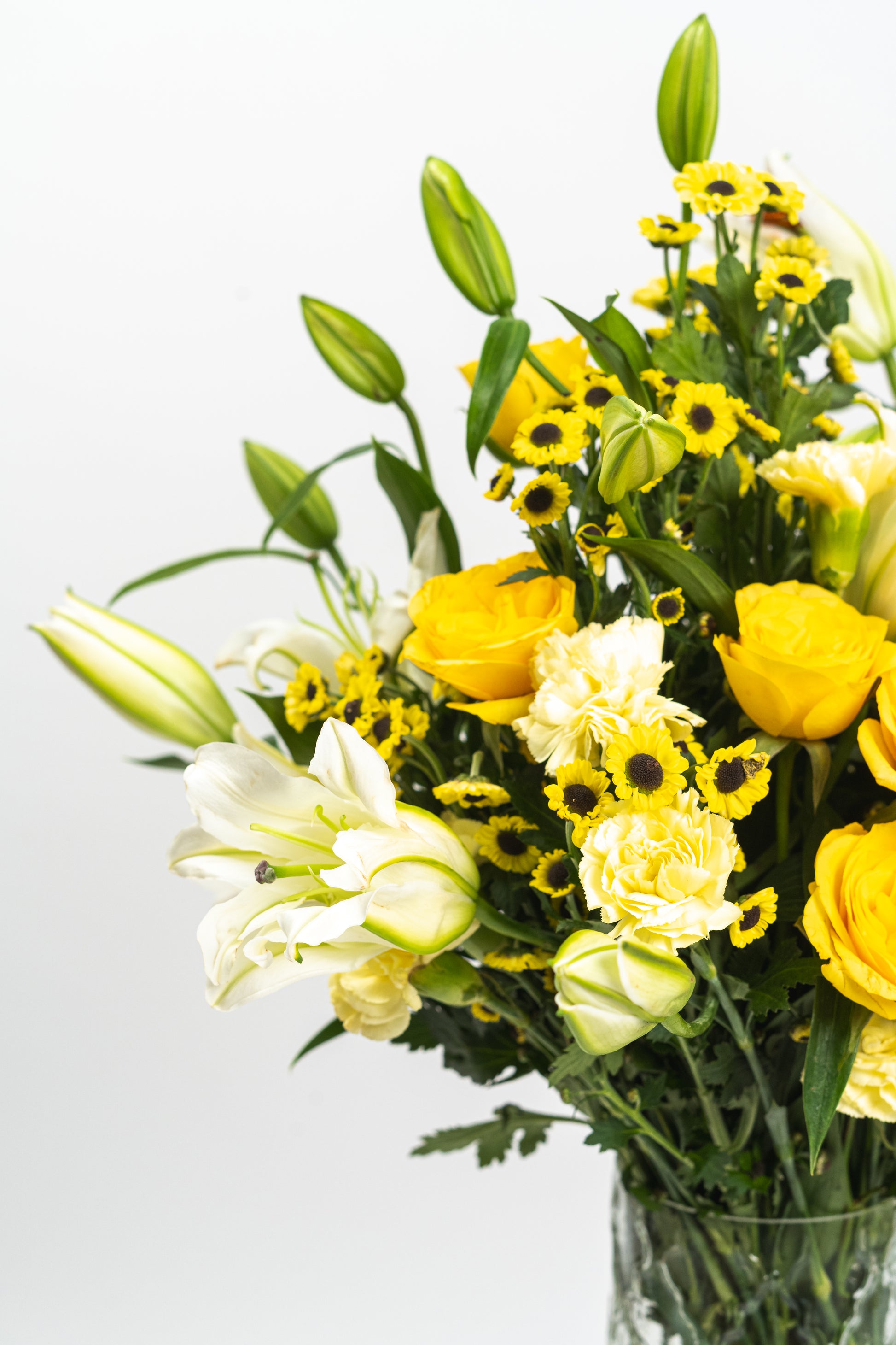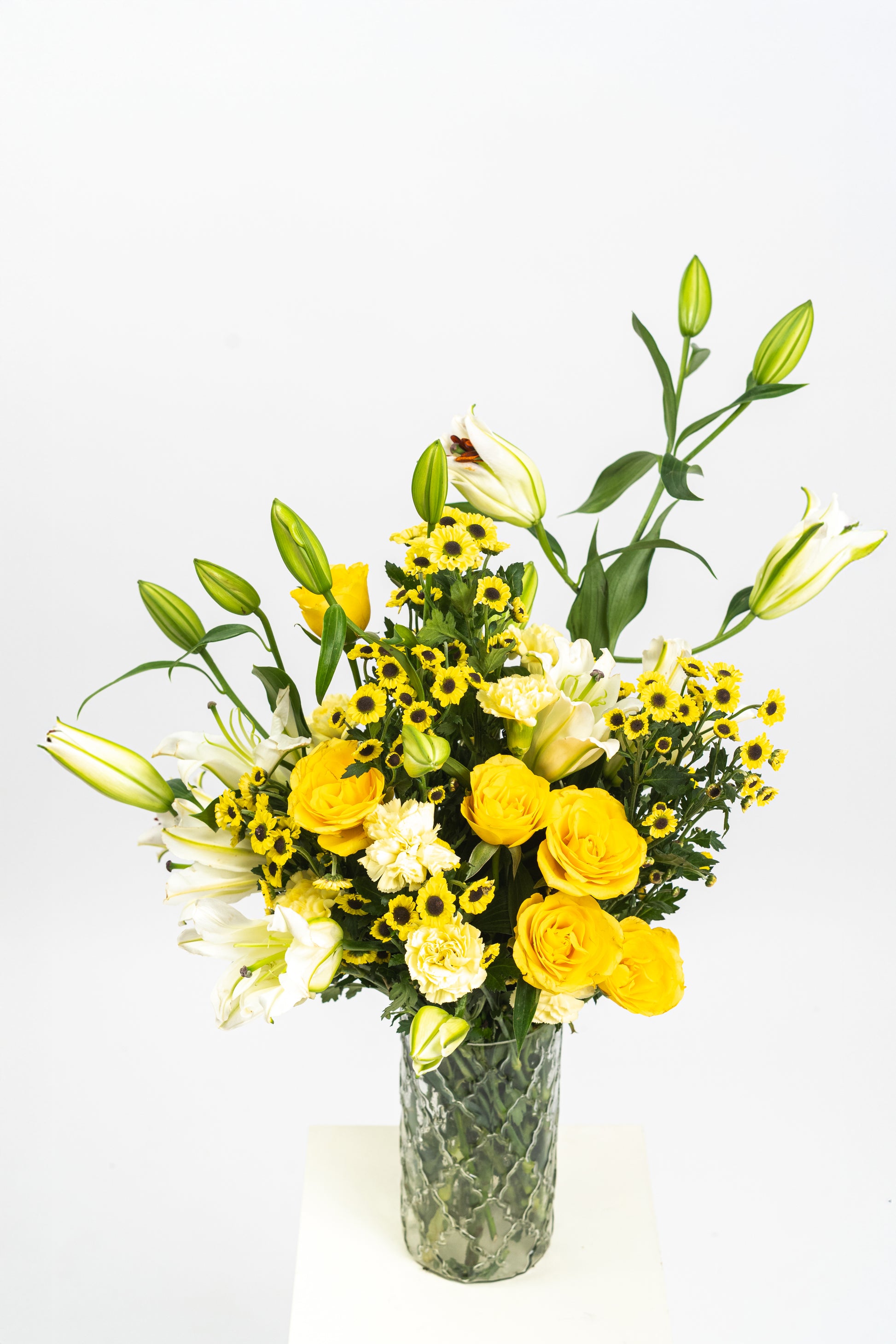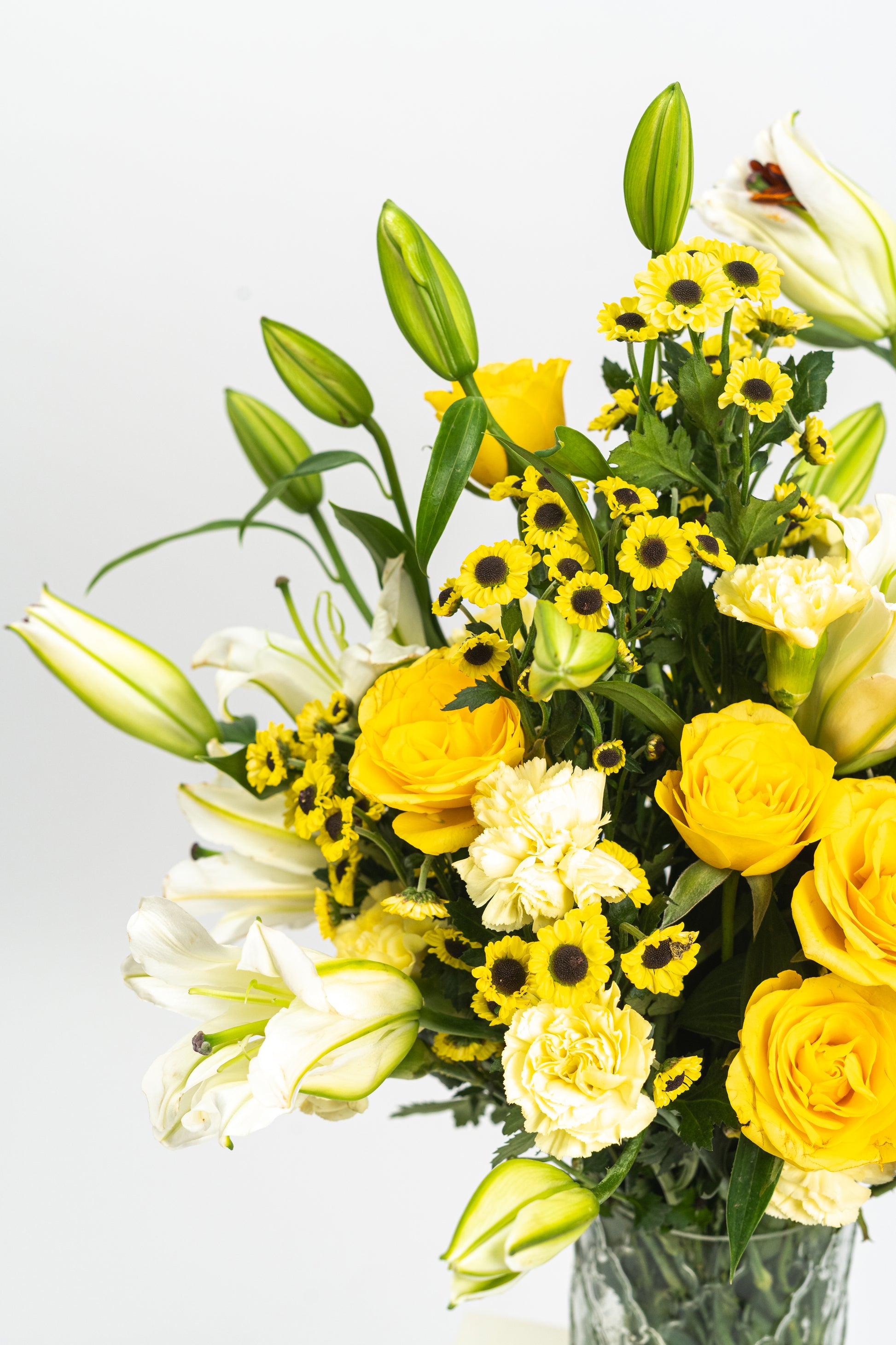 Yellow Roses, Yellow Daisies, White Carnations, White Lilies