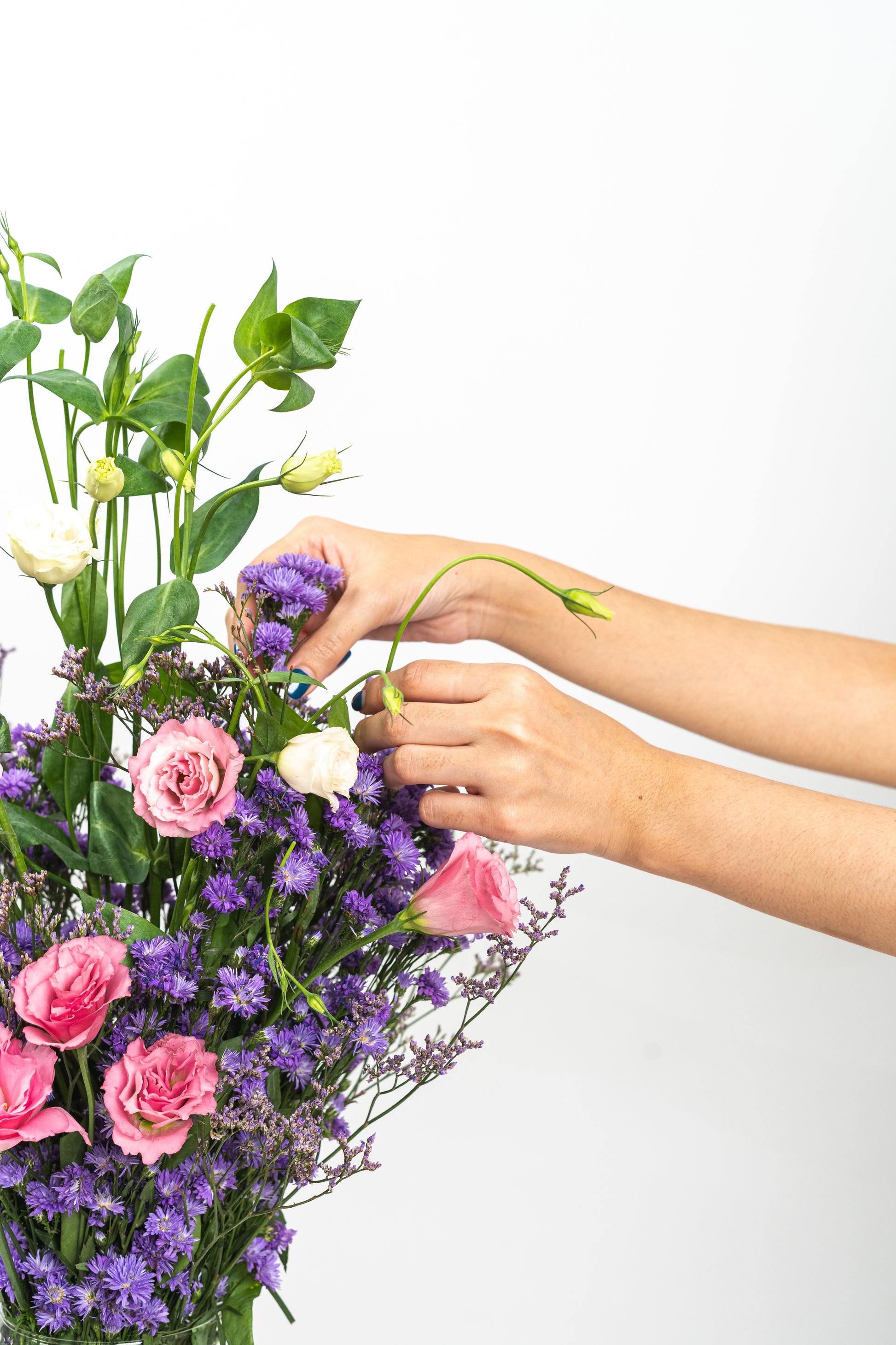 Trim the stems using a sharp knife (never scissors, as they crush the stems). Cut 1–2 inches from the bottom at an angle to help the flowers absorb water better.