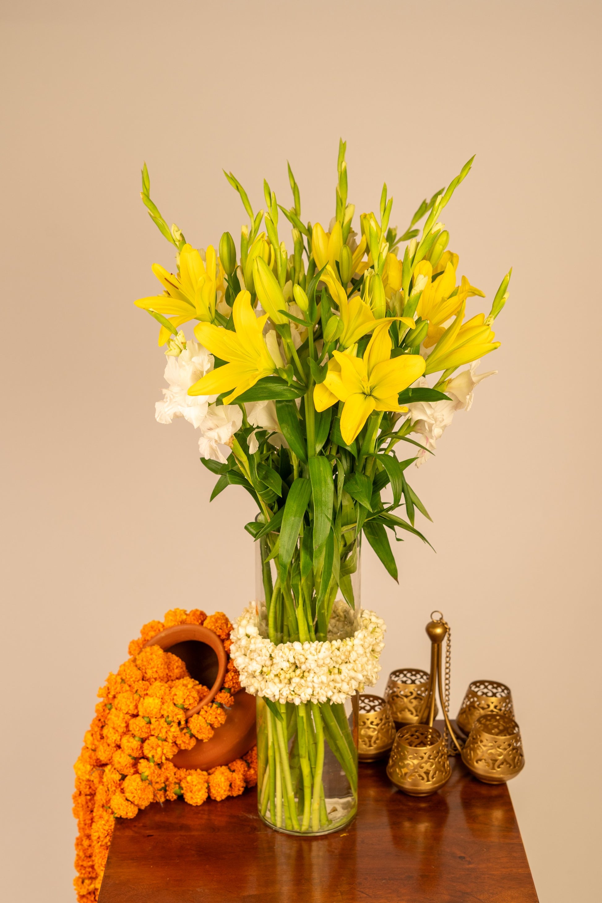 If the exact vase is unavailable, we will replace it with a vase of the same or higher value, maintaining the overall aesthetic and quality of your arrangement.