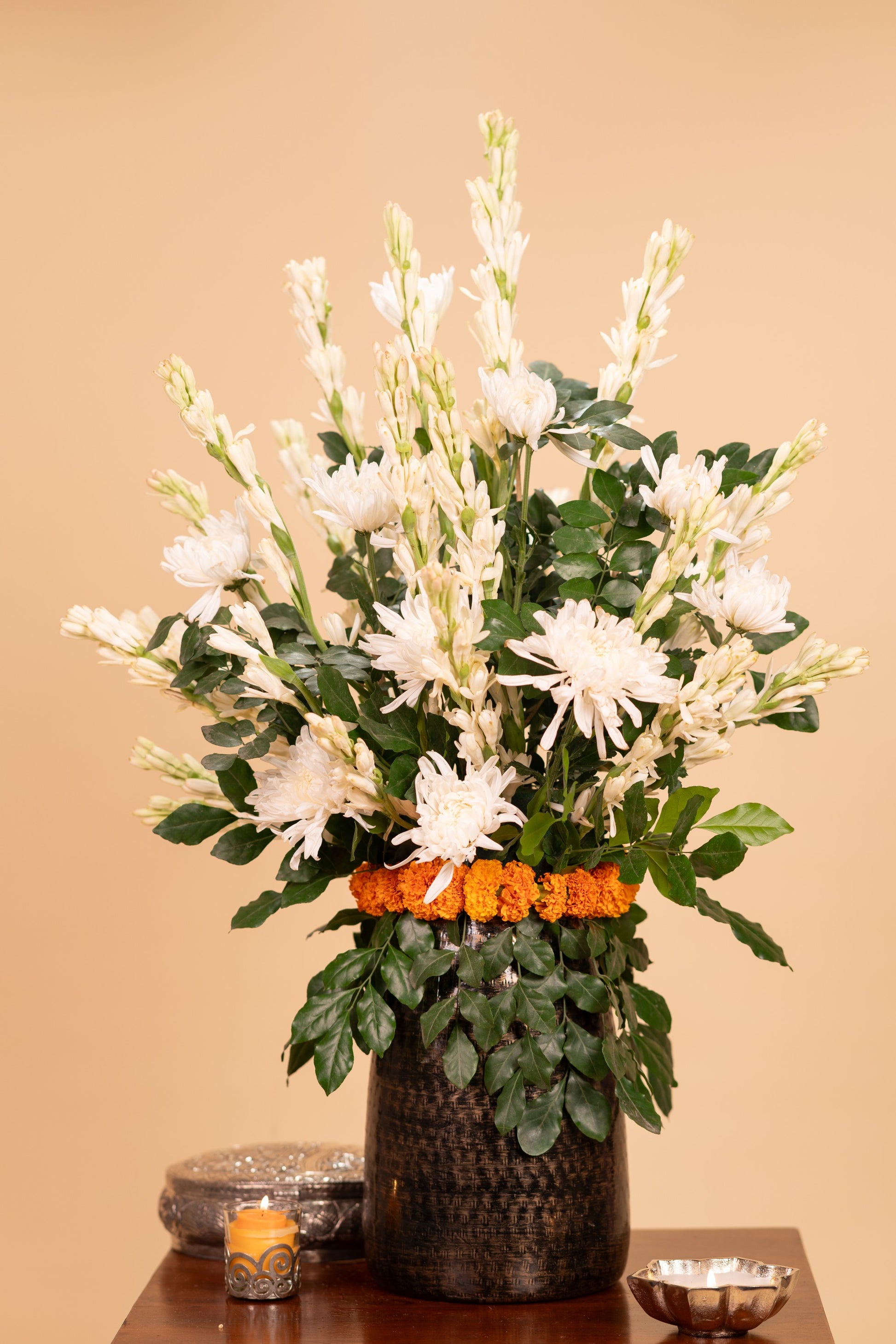 If the exact vase is unavailable, we will replace it with a vase of the same or higher value, maintaining the overall aesthetic and quality of your arrangement.